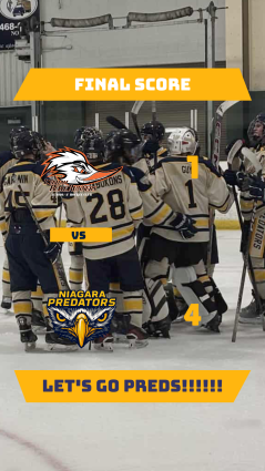 🏒 PREDS WIN AT HOME! 🏒 The Niagara Predators skated to a 4–1 victory over the Durham RoadRunners, earning their second straight win in front of the home fans. It was a physical, competitive game, but the Preds came out on top with a balanced effort on both ends of the ice.